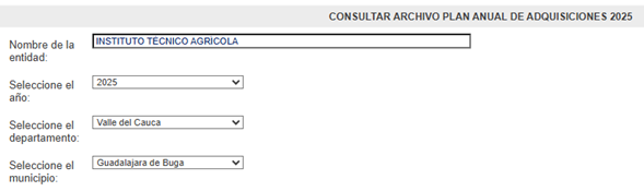 A continuación, encontrará el enlace directo al registro oficial en el SECOP, donde pueden consultarse los documentos reportados según período (vigencia fiscal).Ver Plan Anual de Adquisiciones en SECOP